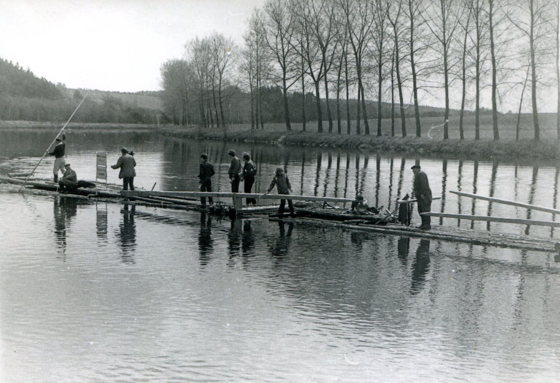Na vorovém pramenu postaveném plavci rodu Husů pro Městské muzeum v Týně nad Vlt., 1981. Já u vesla zvaného "opačina".
